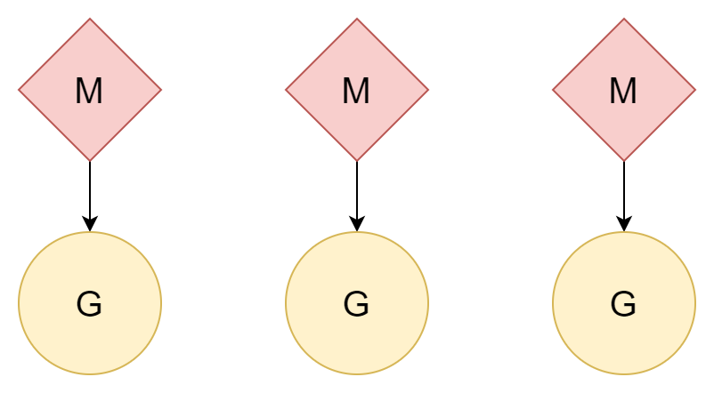 M threads correspond to N coroutines, where M is less than N. Multiple threads correspond to multiple coroutines, with each thread corresponding to several coroutines. Processor P is responsible for scheduling how coroutines G use threads' time slices. This method is relatively better and is the scheduling model that Go has used to this day.