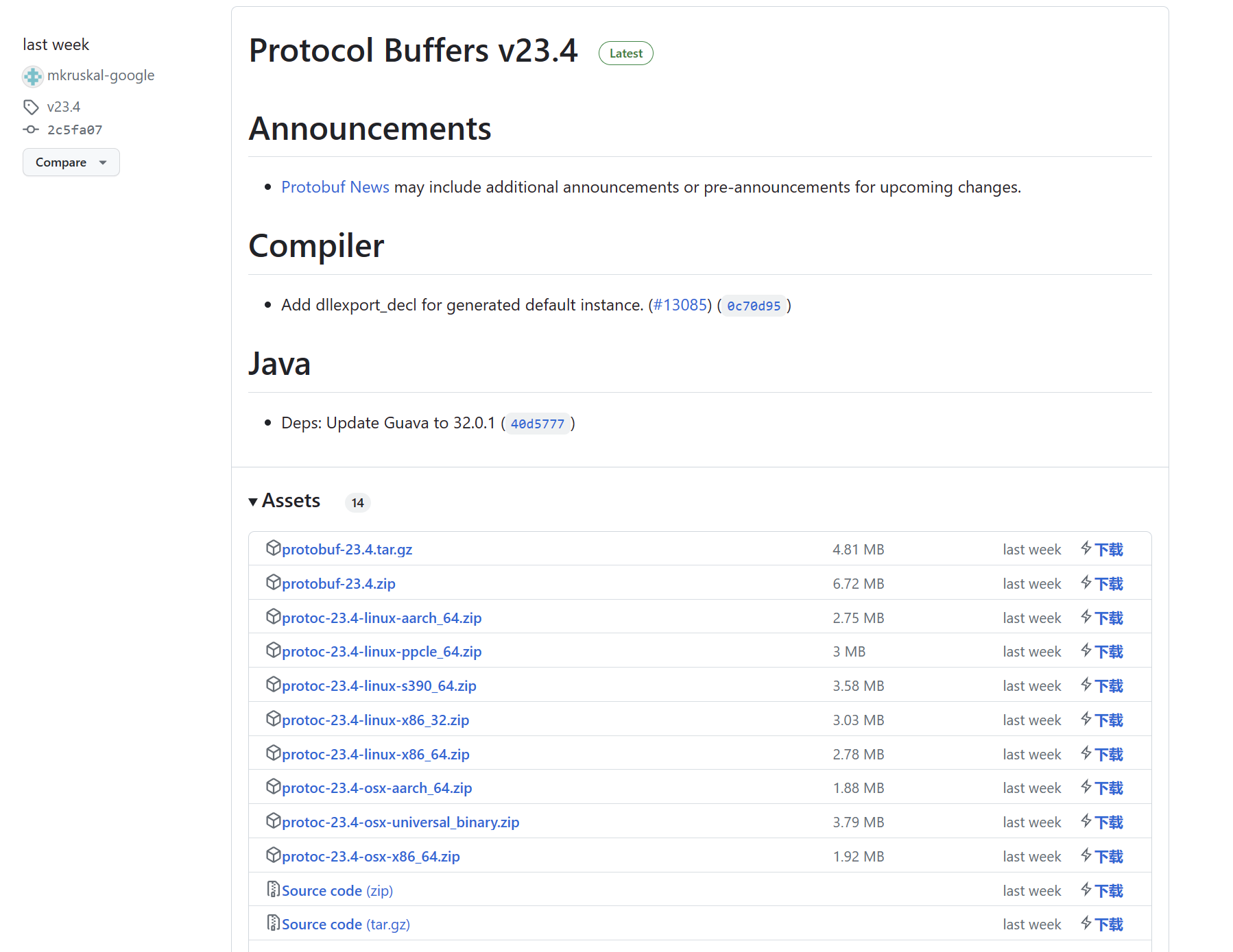 First, download the Protocol Buffer compiler from: Releases · protocolbuffers/protobuf (github.com)